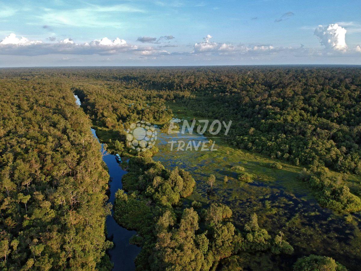 V ranních hodinách odlet do Pangkalan Bun. Po příletu na ostrov Pangkalan Bun přesun do města Kumai, kde se nalodíme na loď. Naší lodí bude tradiční dřevěný říční člun Klotok, z jehož horní paluby můžeme pozorovat deštný prales, kterým budeme po celou dobu cesty proplouvat. Oběd se podává před příjezdem do Tanjung Harapan, záchranného centra pro orangutany, vzdáleného dvě hodiny cesty od Kumai. Odpoledne budeme prozkoumávat řeku a pozorovat opice podél jejích břehů. Přenocování na lodi. (snídaně, večeře)